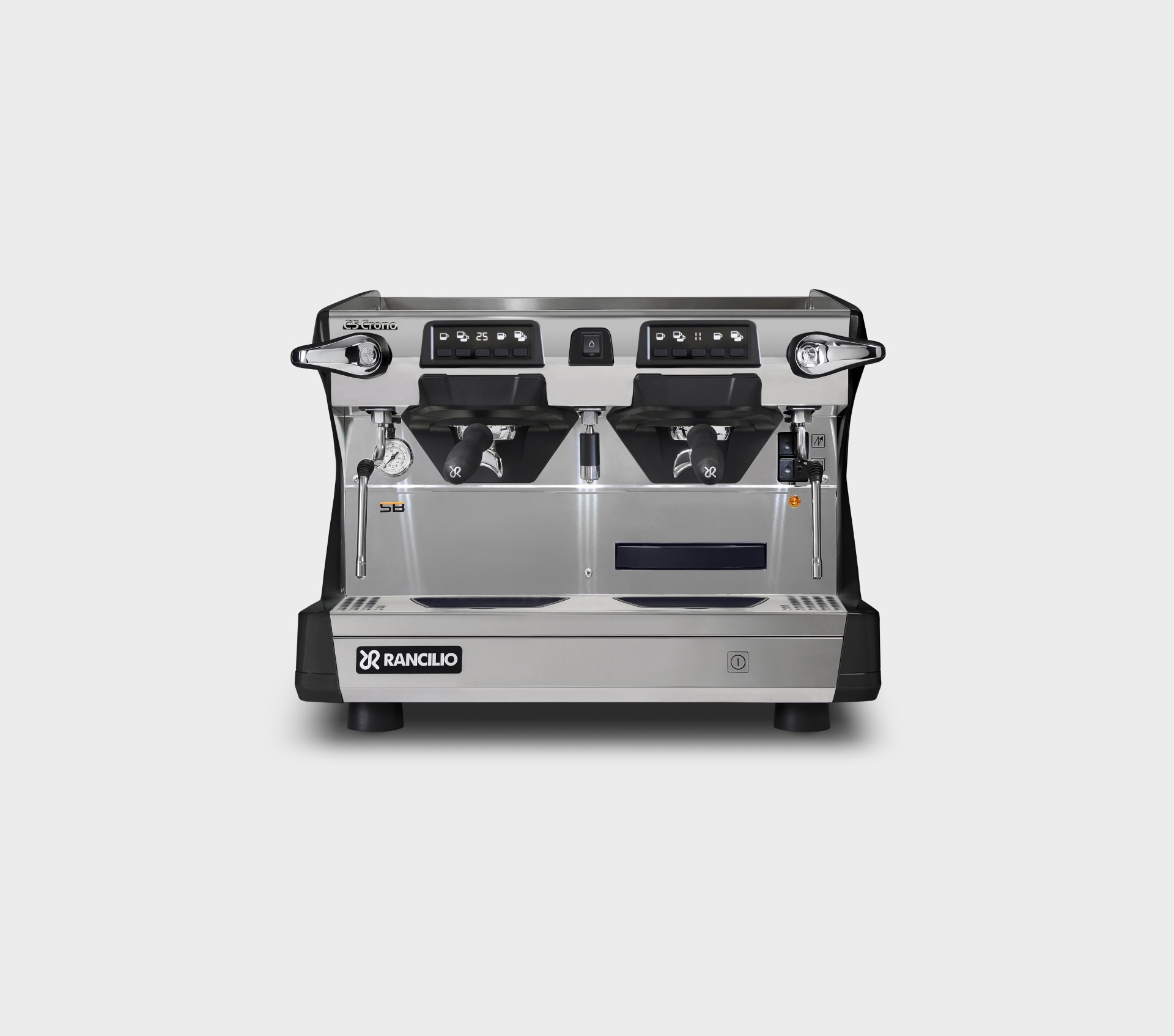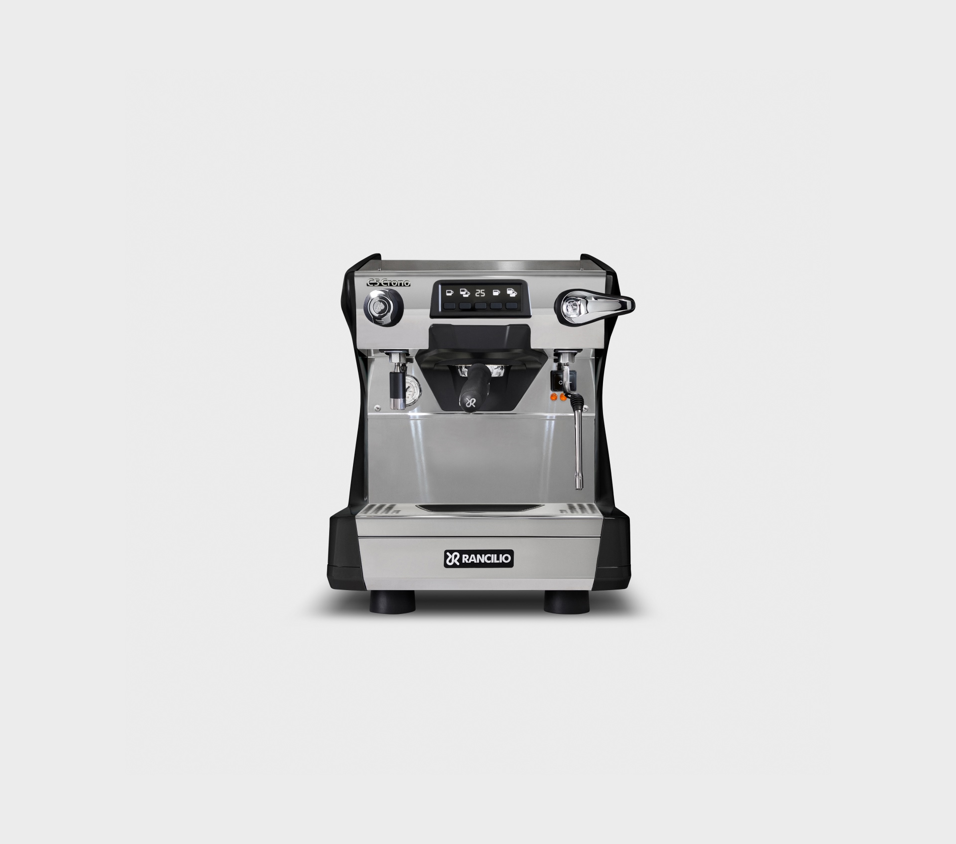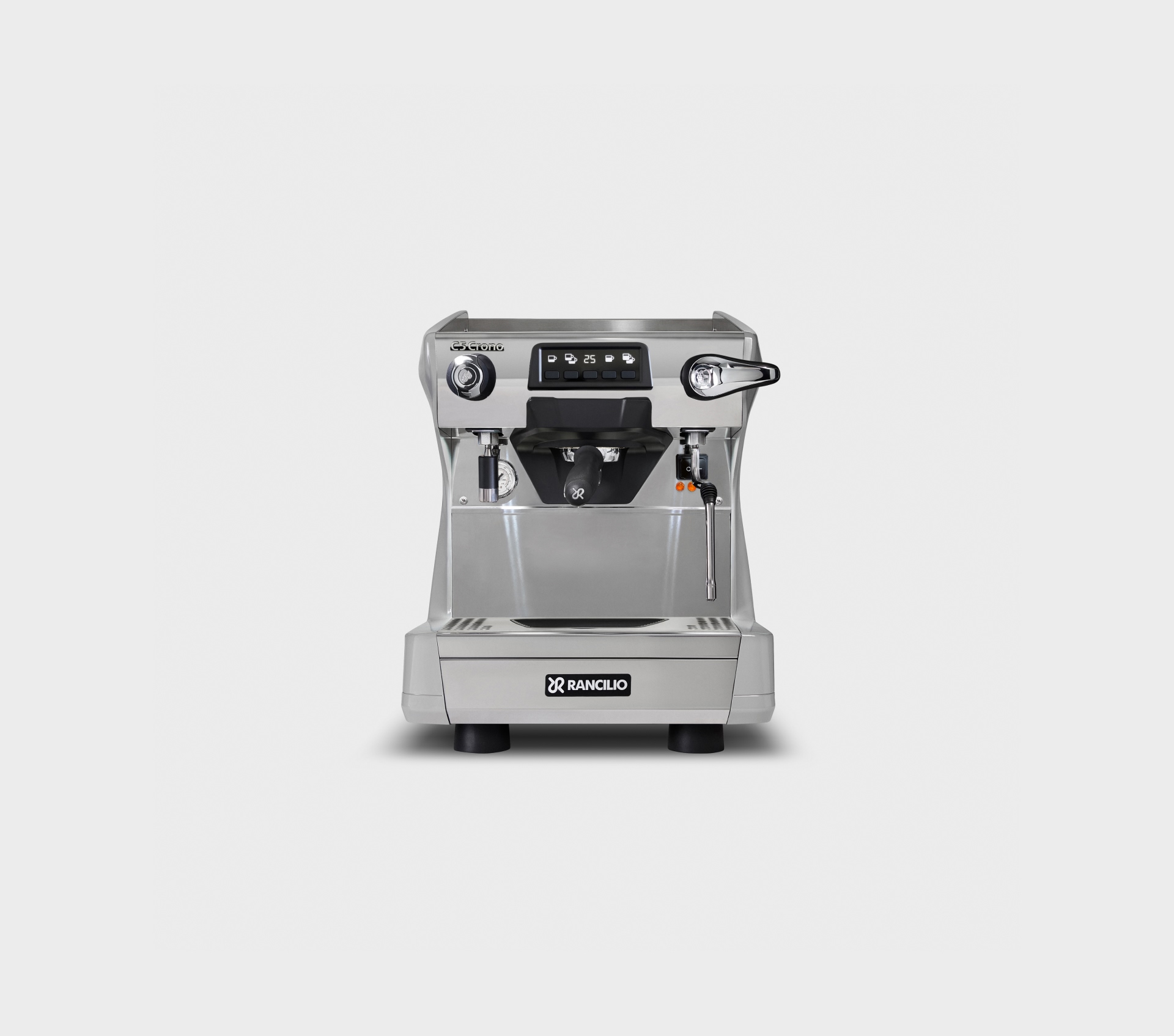 Single-boiler espresso coffee machine with automatic dosing, available in 1, 2, or 3 groups and the compact 2-group format (2GRC). All versions are equipped with raised groups and a digital display integrated into the keypad of each group. Steady Brew (SB) technology is available for all versions except the 1GR TALL.