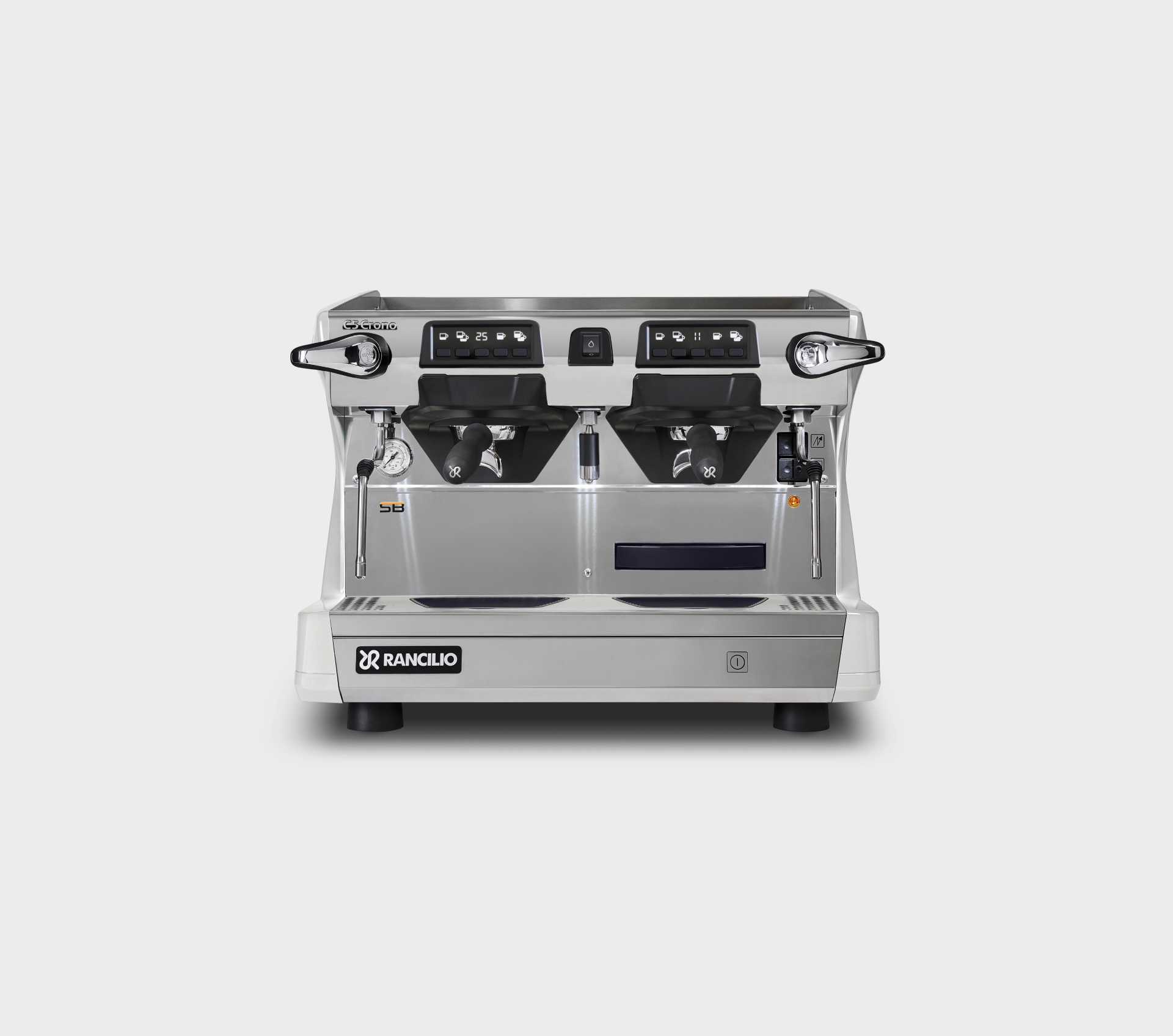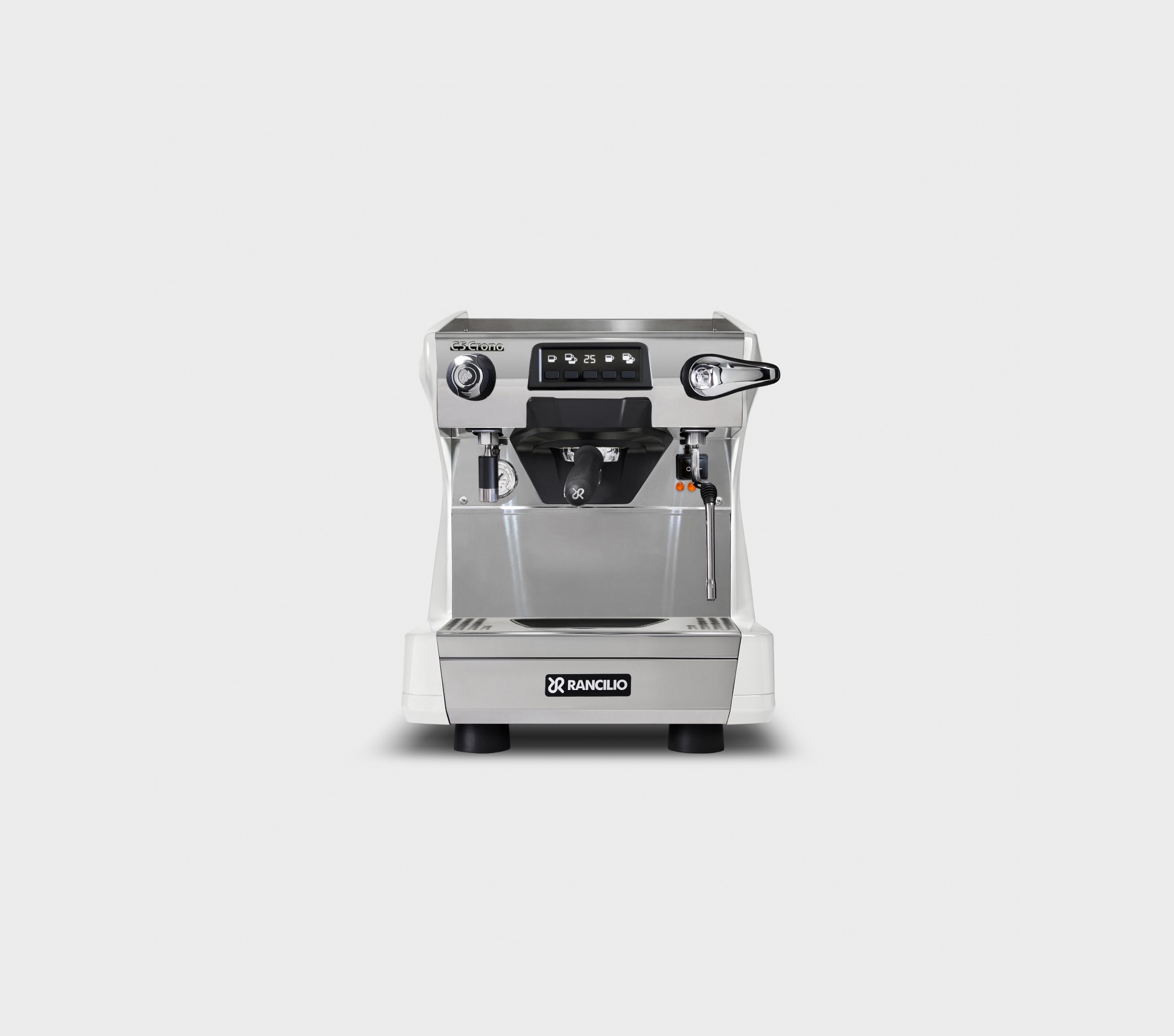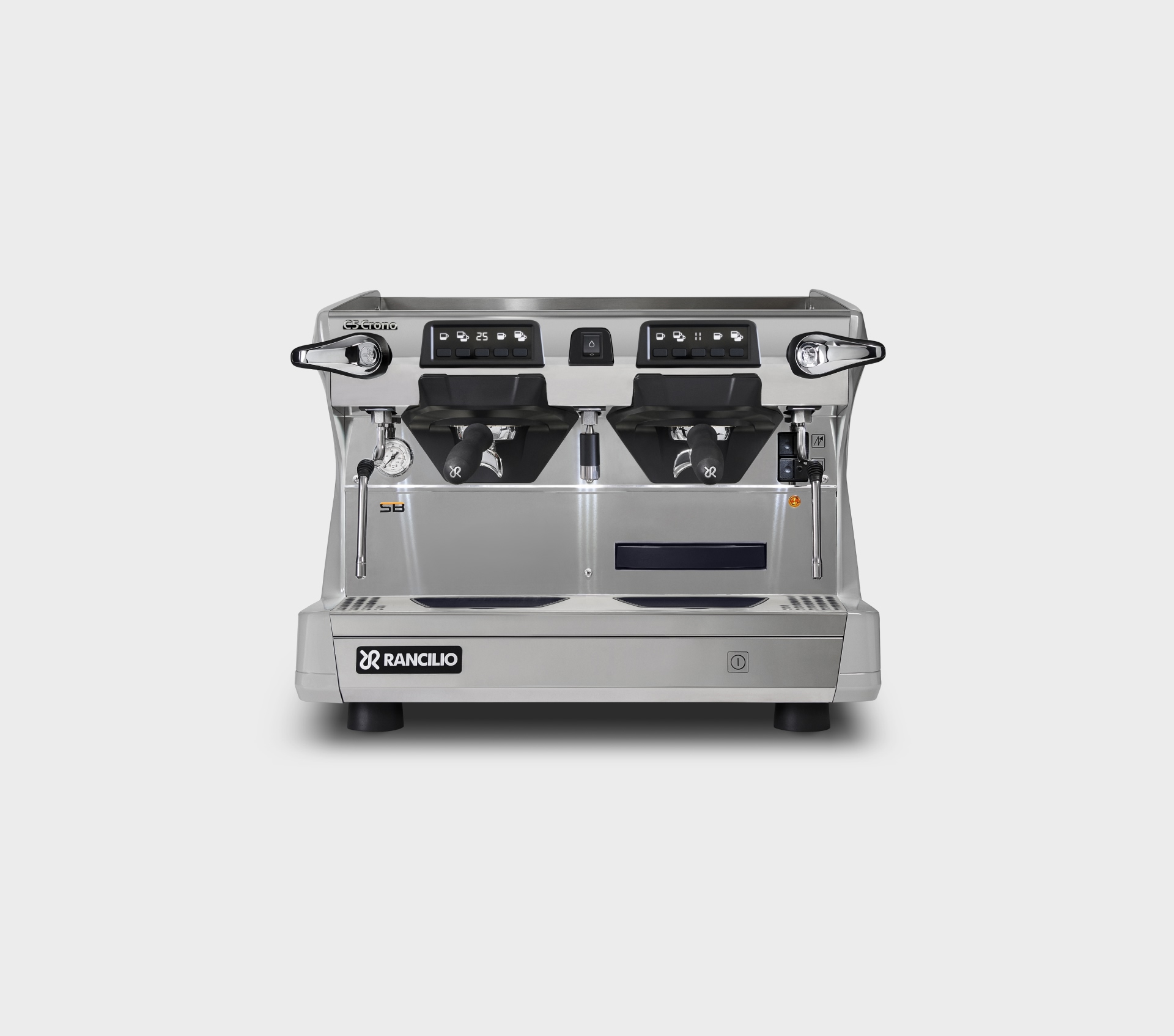 Single-boiler espresso coffee machine with automatic dosing, available in 1, 2, or 3 groups and the compact 2-group format (2GRC). All versions are equipped with raised groups and a digital display integrated into the keypad of each group. Steady Brew (SB) technology is available for all versions except the 1GR TALL.